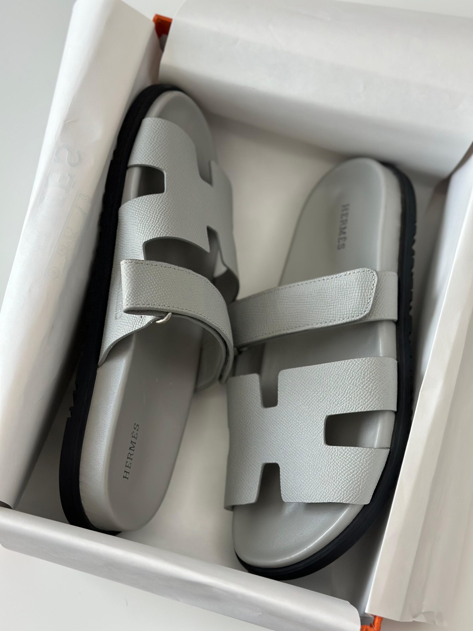 Hermès Chypre Sandal in White Leather – Slip-On with Adjustable “H” Strap