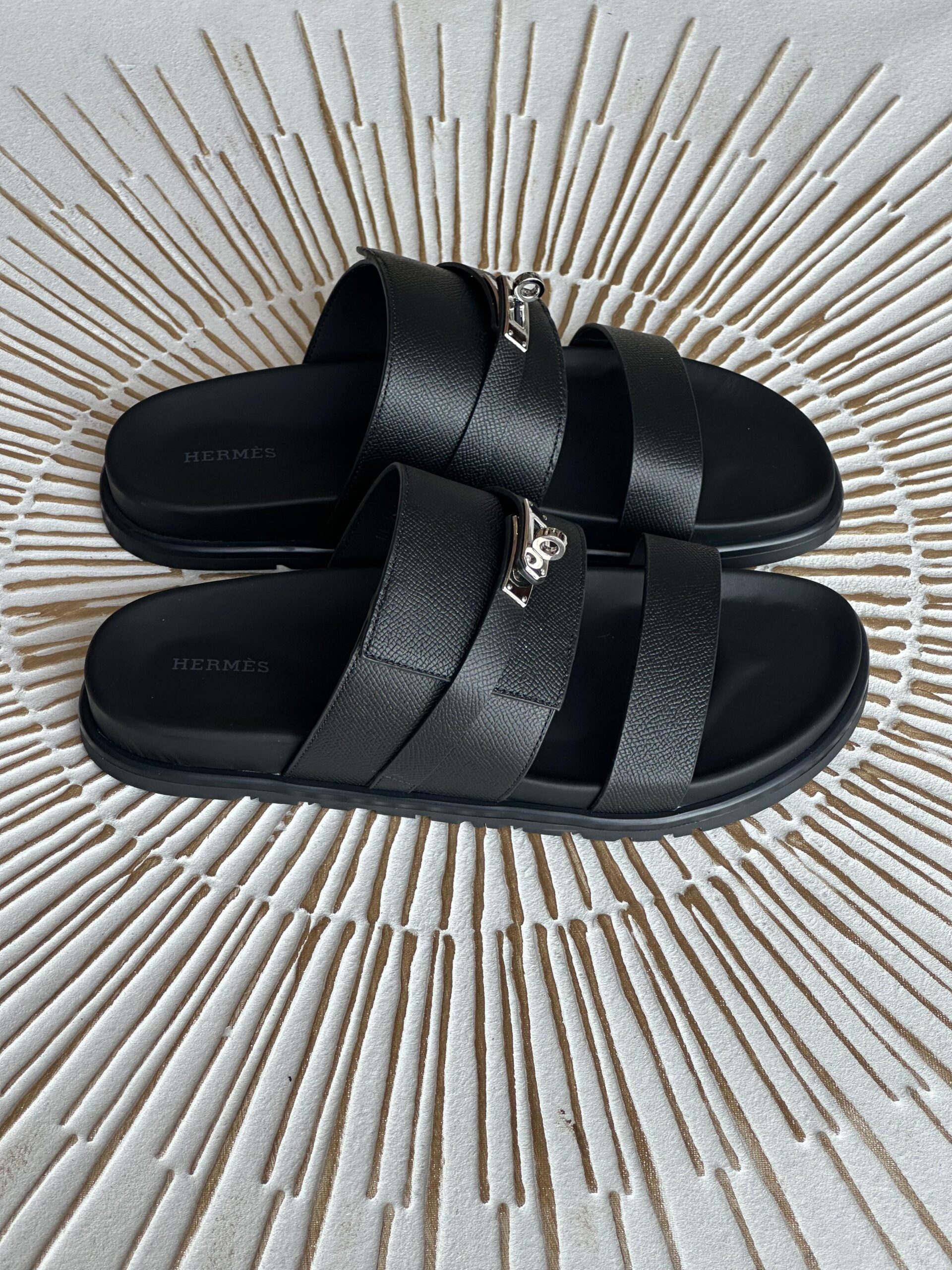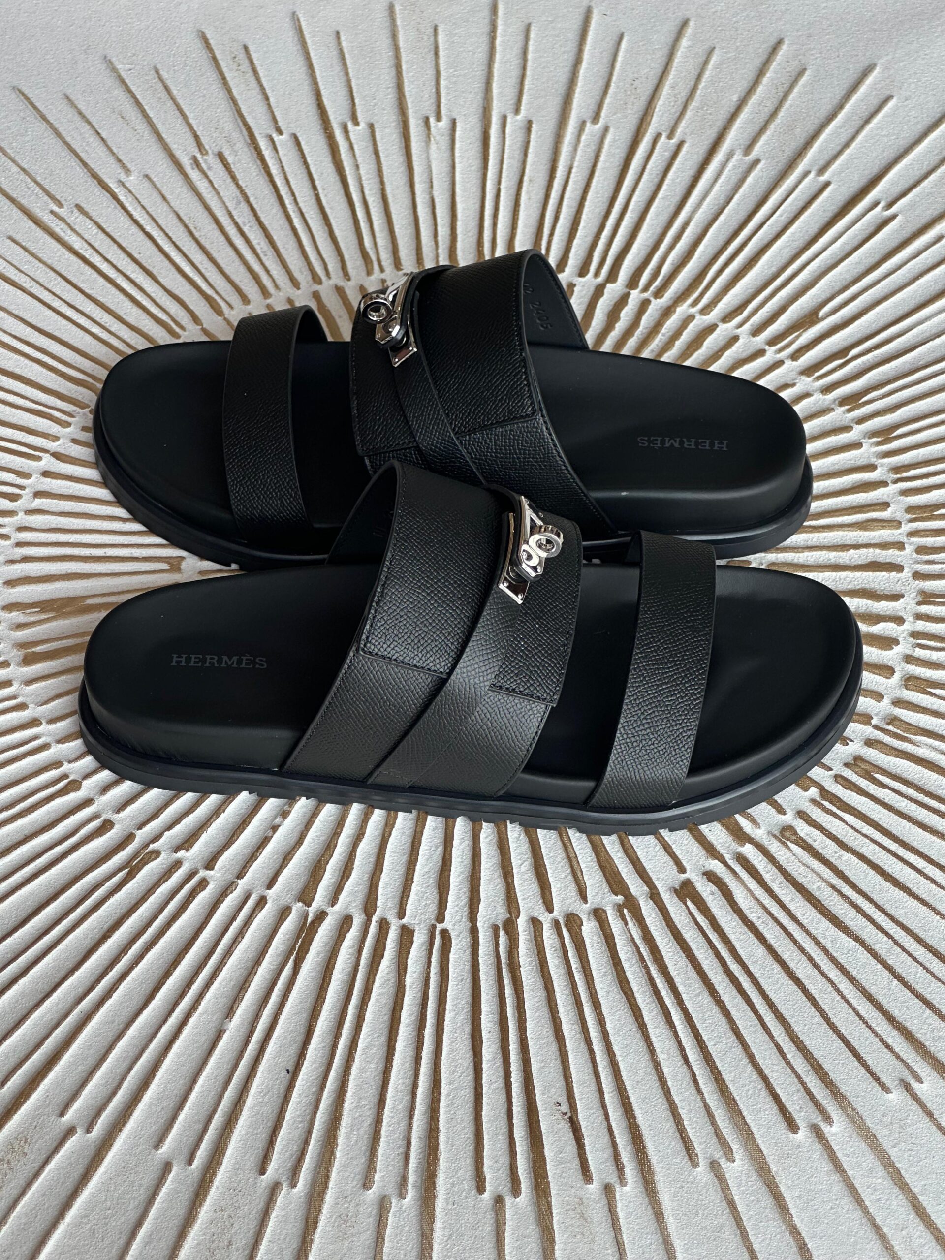 Hermès Jackson Sandal in Black Calfskin – Epsom Techno Sandal with Kelly Buckle”