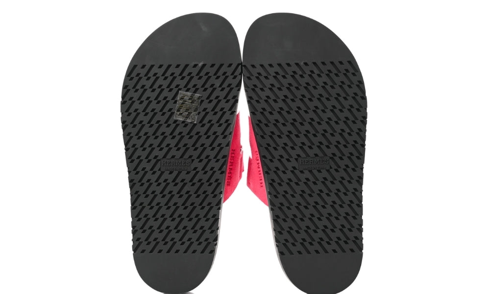 HERMES Suede Goatskin Womens Chypre Sandals Rouge Marsala