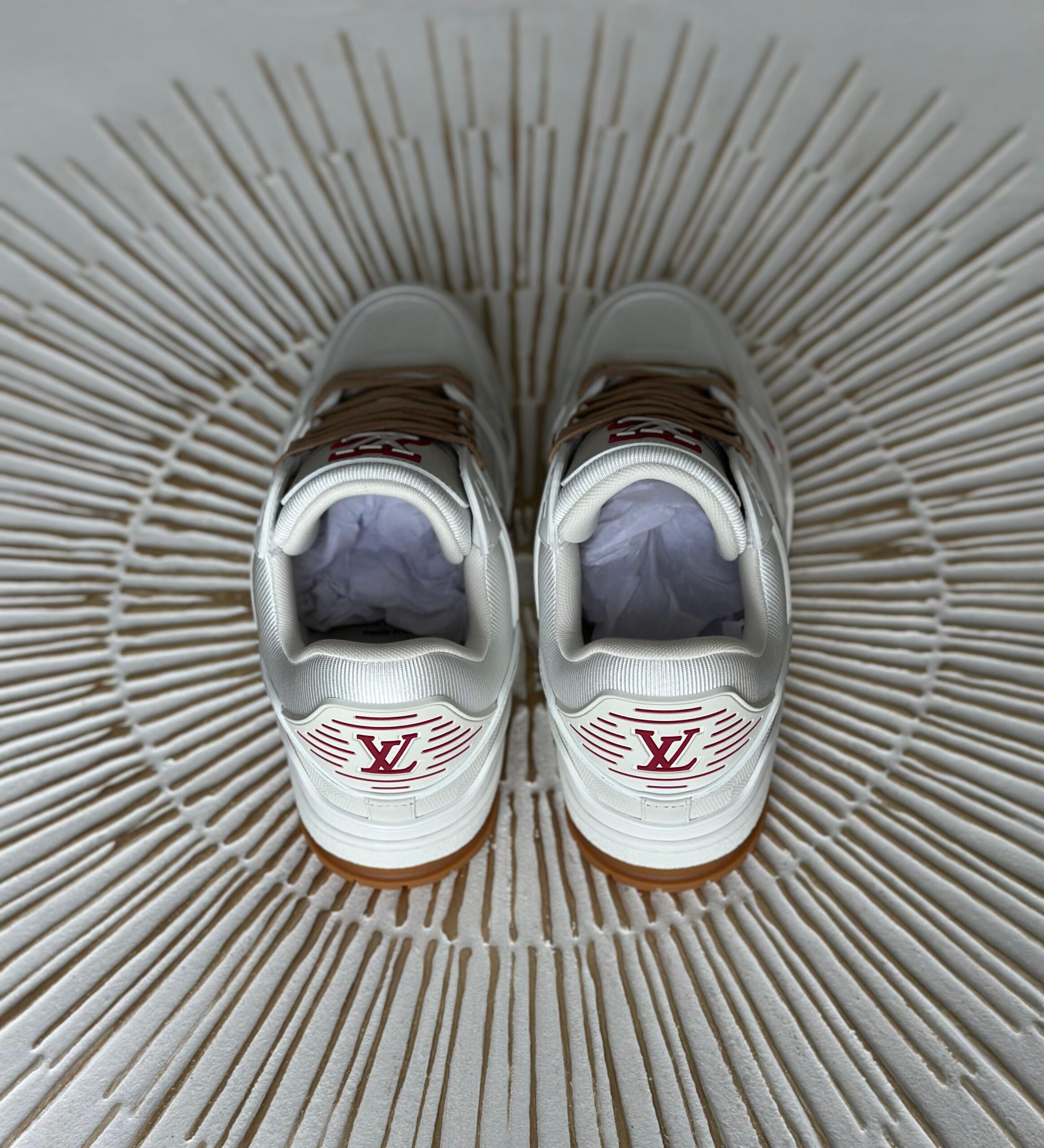 | Title | Louis Vuitton LV Trainer Sneakers – White Leather with Red LV Accents (Men’s) |