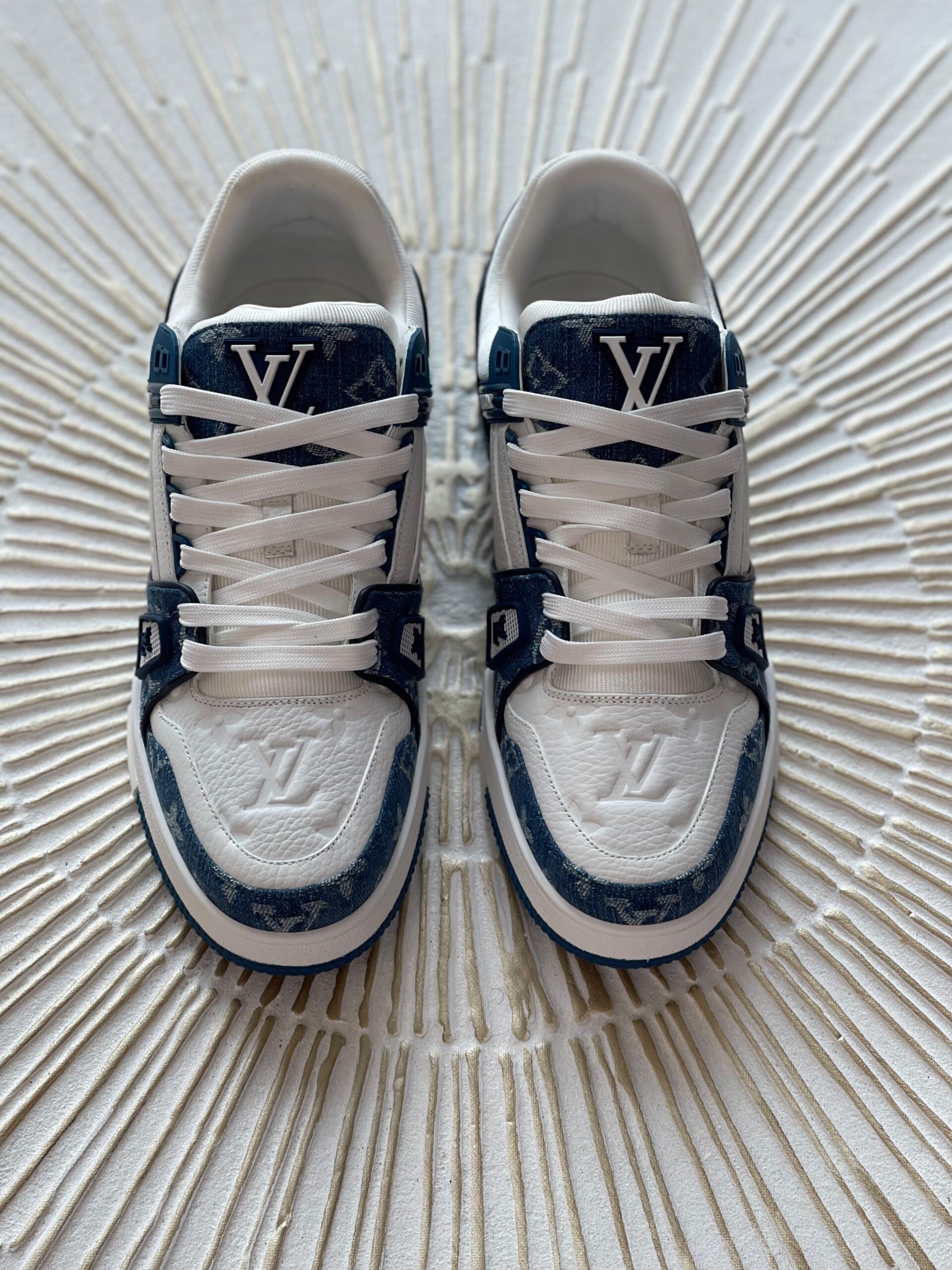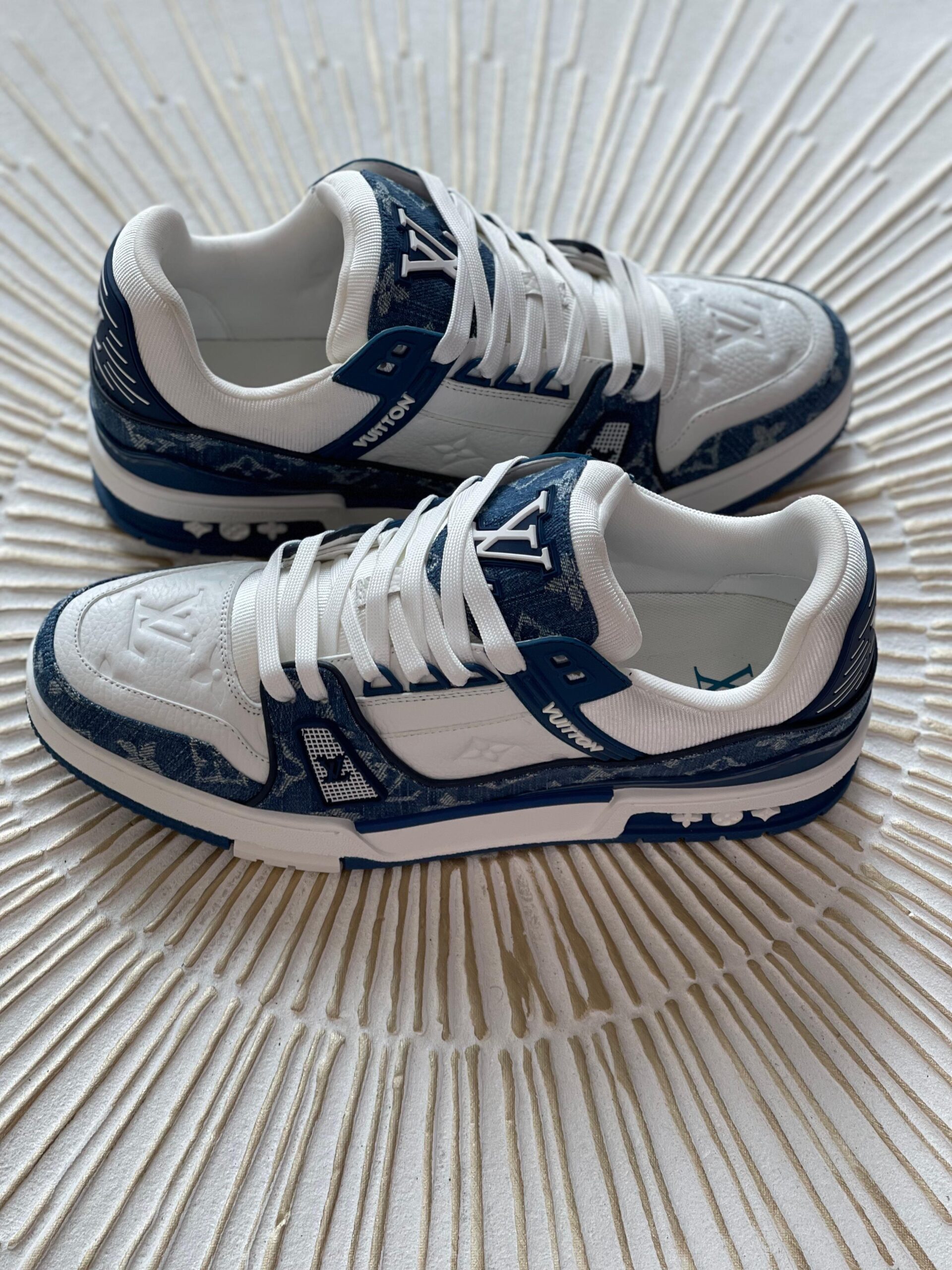 | Title | LV Trainer Sneaker – Blue Monogram Denim & Calf Leather (Grade 1:1, Men’s) |