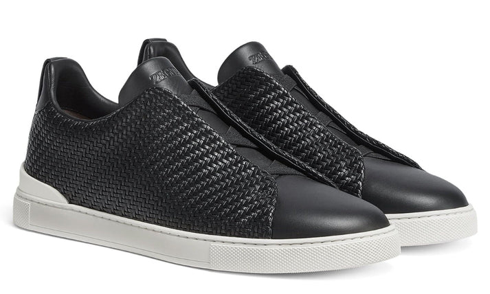Distinguished by their woven leather uppers, the black PELLETESSUTA™ Triple Stitch™ low top sneakers combine rich materials with unique texture. Lightweight and flexible, this special design is a luxurious take on casual footwear. The sneakers slip on easily thanks to the collection’s iconic, triple-crossed elastics, which evoke the hand-stitching of classic leather shoes.
